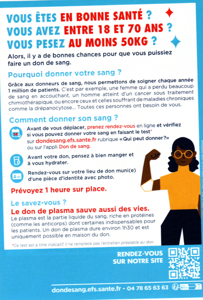 – Qu’il est recommandé de prendre RDV sur dondesang.efs.santé.fr